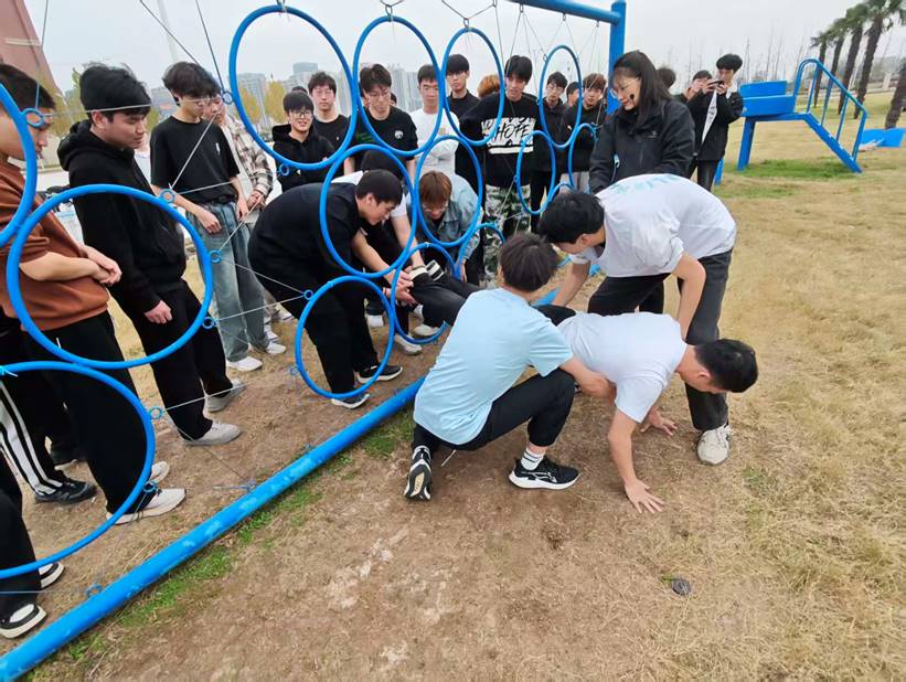在仿真射击环节,指导老师详细讲解了持枪、瞄准等技术要点。员工们亲手操作模拟枪械,在射击体验中不仅感受到装备的重量与后坐力,更体会到军人所必备的专注与担当,实现了国防教育从“认知”到“感知”的深化;军事攀岩项目成为考验勇气与意志的实践课堂。员工们穿戴安全装备,迎难而上,在岩壁上不断寻找支撑点,突破体力与心理的极限。登顶的瞬间,不仅是个人的胜利,更是对军人顽强拼搏精神的真切体悟;“穿越电网”素质拓展项目则将团队协作推向高潮。面对模拟电网障碍,同学们迅速分工、默契配合,在无声环境中运用手势沟通,不断调整策略,协力完成挑战。整个过程充分展现了集体智慧与凝聚力,也让每位参与者深刻认识到国防建设中团结协作的重要性。
