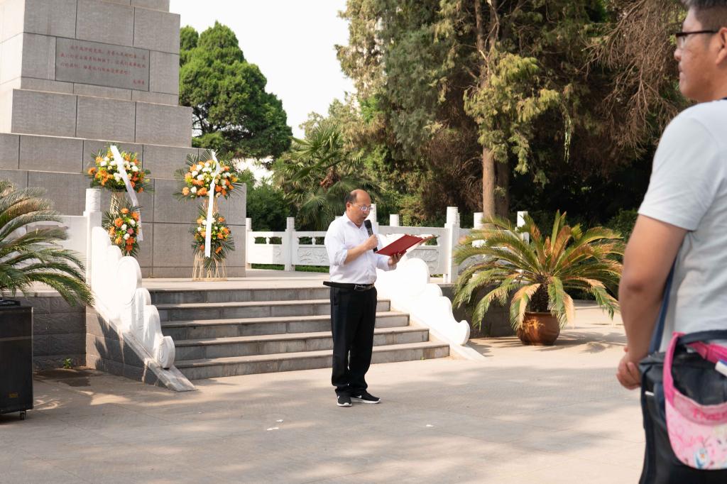 ylg060net永利娱高党总支书记翟迎朝在临颍烈士纪念碑前为党员和入党积极分子上了一堂生动的党课。他说 ,“忘记历史就意味着背叛”,在中华民族从黑暗走向光明、从贫弱走向富强、从屈辱走向辉煌的征程上,每一滴热血都值得礼赞,每一次牺牲都应当铭记,每一位英灵都永垂不朽。铭记历史、缅怀先烈,常思感恩、传承精神。今天,我们比历史上任何时期都更接近中华民族伟大复兴的目标,也更加需要发扬革命先烈的优良传统,弘扬烈士精神,继承先烈遗志。不忘初心,让红色精神薪火相传;牢记使命,沿复兴之路阔步向前!