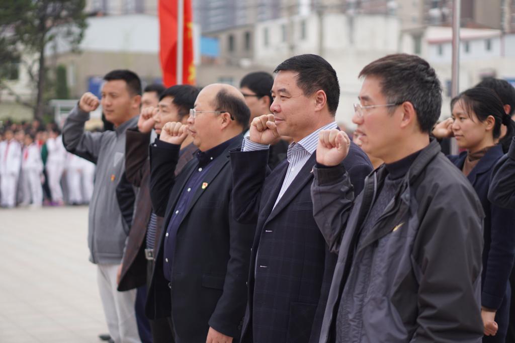 在巍然耸立的革命烈士纪念碑前,大家肃穆站立,怀着无比凝重的心情肃立默哀,向革命烈士敬献花篮,寄托哀思,表达对革命先烈深切缅怀和敬意。参加活动的党员在革命烈士纪念碑前,面对鲜艳的党旗,举起右拳,重温入党誓词,不忘初心、牢记使命。